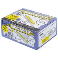 オフィスの書類の整理、整頓に。2穴の書類を簡単にとじたい時に便利!2穴書類を簡単ファイリング。綴じ穴があいているので、クリップしたままファイルできます。コピー用紙25枚まで綴じられます。見出しスペースに文字が書けます。100本入り、5色各20本。ダイオキシンカット