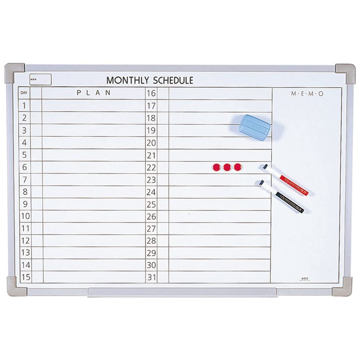 オフィスのスケジュール管理に!オフィスの1ヶ月の予定が一目瞭然!ヨコ書きタイプのスケジュールボード。ちょっとした連絡事項も書き込めるメモスペース。