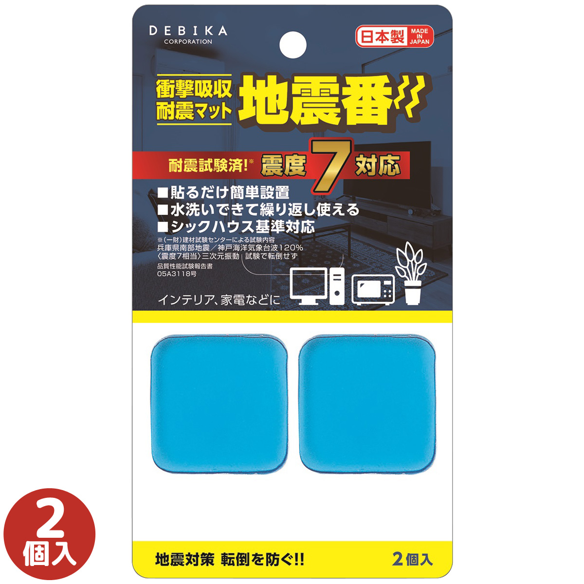 優れた振動吸収能力により、家具などの転倒を防ぎます。耐震用接着マット!日本製で、シックハウス基準に対応した安全素材を使用しています。小型のテレビ、オーディオ等に。樹脂の柔軟性により、優れた振動吸収能力!粘着面が汚れたら、水洗いして乾かせば貼りなおしができます。接着剤や両面テープなしに貼ることができます。保管に便利なチャック袋付き。"耐震度:震度7"耐震試験済!((財)健在試験センター中央試験所による検査)