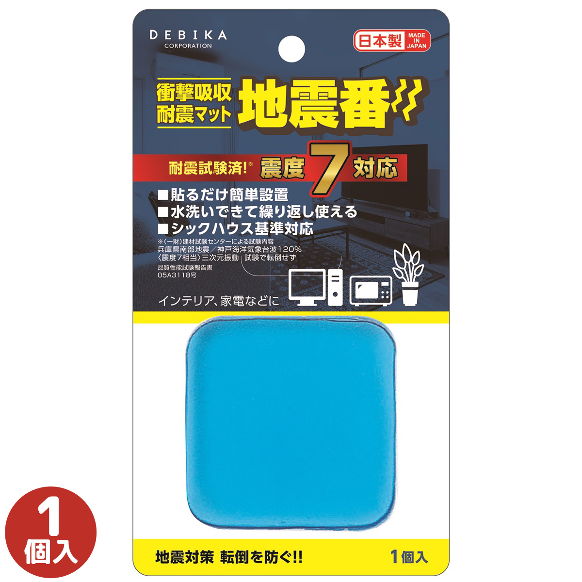 優れた振動吸収能力により、家具などの転倒を防ぎます。耐震用接着マット!日本製で、シックハウス基準に対応した安全素材を使用しています。テレビ、タワー型パソコン等に。樹脂の柔軟性により、優れた振動吸収能力!粘着面が汚れたら、水洗いして乾かせば貼りなおしができます。接着剤や両面テープなしに貼ることができます。保管に便利なチャック袋付き。"耐震度:震度7"耐震試験済!((財)健在試験センター中央試験所による検査)