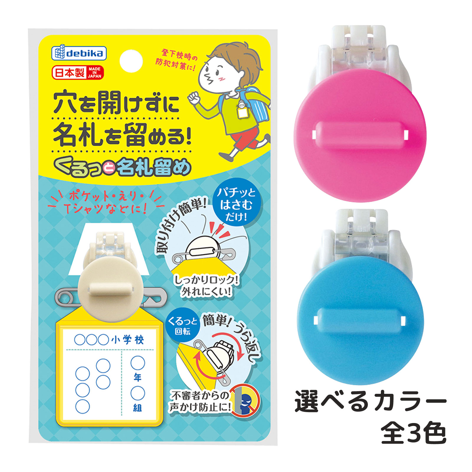 服に穴を開けずに名札を留める!簡単取り付けクリップタイプ なふだ こども 名前 隠す 回転 裏返し ●入学準備●防犯【●こども館】 4904901636015 4904901636077 4904901636084 4904901636091 ls@DBK-0624