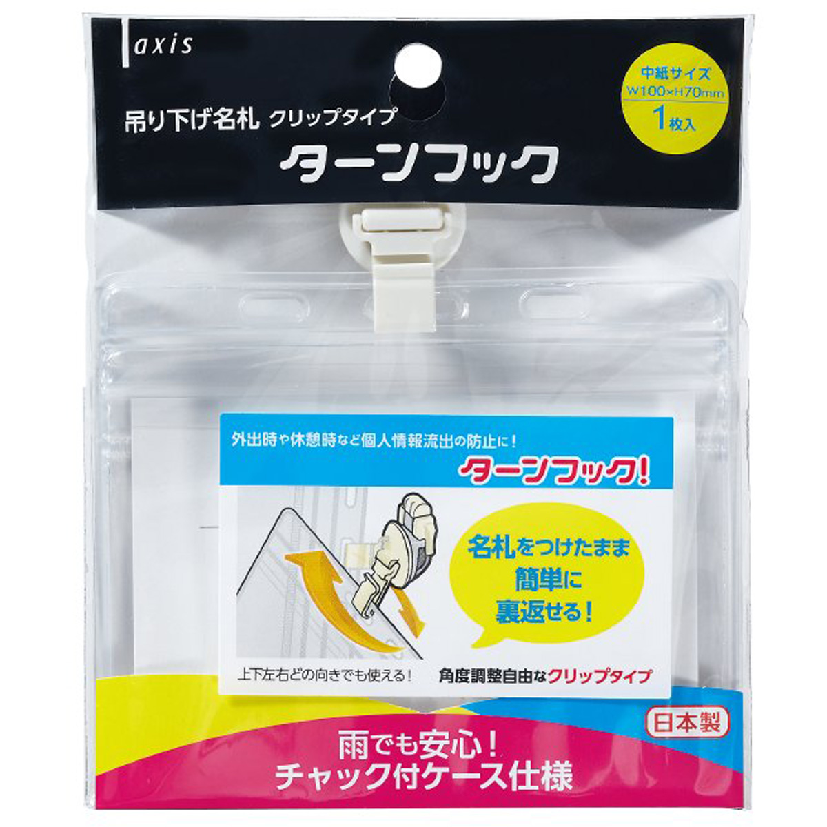 簡単に裏返せるターンフック付き、クリップタイプの吊り下げ名札です。雨や水濡れを防ぐチャック付きケース! 【●こども館】 4904901636022 ls@DBK-0628