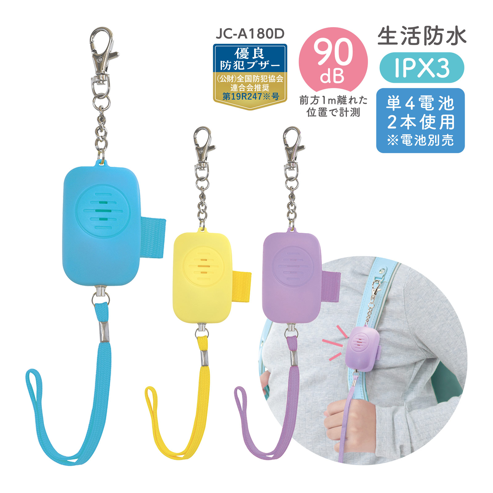 防犯ブザー 子ども 子供 小学生 ランドセル 大音量 防水 女の子 男の子 ブルー イエロー パープル かわいい 防犯グッズ 防犯対策 デビカ
