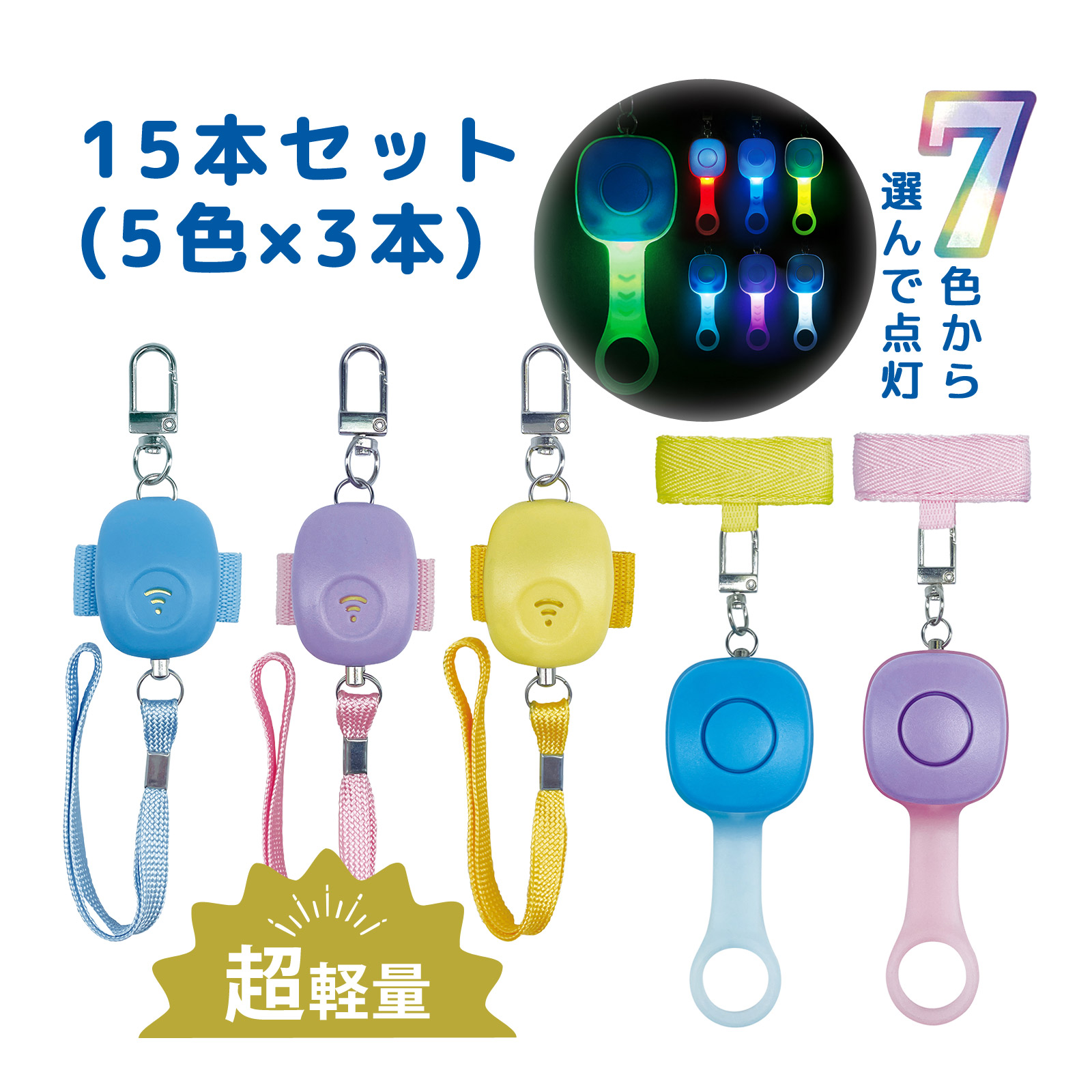 防犯ブザー 大音量 15個セット(5タイプ×各3個) 7色に光る 非常用ブザー ミ二かる非常用ブザー ランドセル 防犯 事故防止
