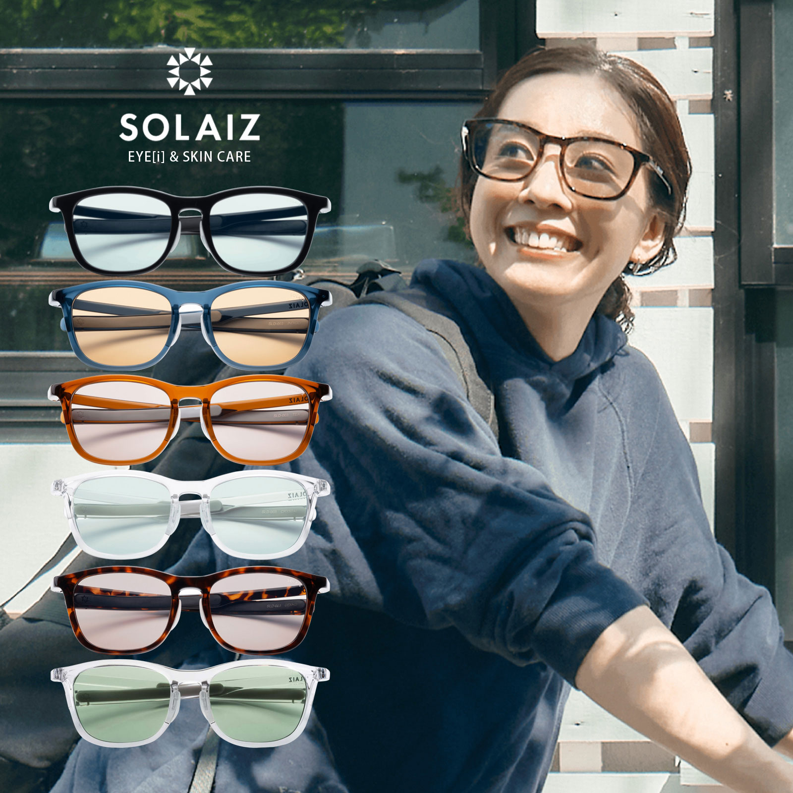 スマートなウエリントンモデル。 クールな印象を与えつつ、存在感もあるのが特徴。男性なら渋くカッコ良く、女性なら小顔効果が期待できるモデルです。Frame哺乳瓶や医療用につかわれる安心安全なTR-90 樹脂素材のフレーム。頭部をふんわり包み込むアール形状のテンプルは、弾力性があり程よいホールド感。さらに、重心バランスを後ろにもたせ、鼻への負担を減らし、重たさを感じにくいストレスフリーなかけ心地です。テンプルラバーは、後頭部に添うようにフィットし、クッション性とグリップ力でズレにくい抜群の安定感です。Padお肌に優しくあたるTPE 樹脂の鼻パッドは鼻にのせた時にズレにくく、痛くなりにくいのが特徴。クッション性を高めたオリジナルの形状で、鼻に吸いつくような心地良いフィット感です。Pouch付属でSOLAIZ オリジナルマイクロファイバーポーチがついています。持ち運びだけでなくメガネ拭きとしても使えます。超極細繊維で細かいほこりや汚れを優しく拭き取ります。※黒のポーチですが、色の特性上、湿った状態での長時間の放置または摩擦により他のものへ色移りする恐れがありますのでご注意下さい。お洗濯は他のものとの混合洗いはお避け下さい。色落ちや色移りの原因となります。
