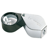 マットクローム仕上げの頑丈なケースと黒塗りの金属枠がレンズを保護します。工業用精密検査用ルーペです。倍率:12倍、レンズサイズ:φ15mm