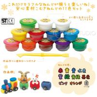 小さいお子様に最適な柔らかく、安心素材でできた小麦粘土です。これだけカラフルなねんどが揃うと楽しいね!安心素材のこむぎ粘土が11色になりました。お子様の自由な創造性と発想力を育むねんどに最適です。発色が良く、遊びながら自由な発想と豊かな創造力を養います。よく使う白色だけ2つ入ってます。作品作りに便利なヘラ付きです。ねんどヘラ1本付き。