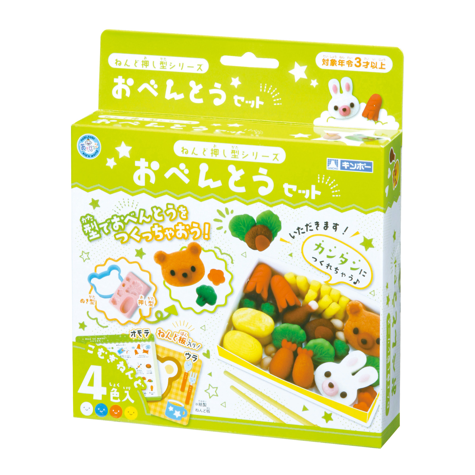 ねんどで遊んでおべんとうが作れる「ねんど押し型シリーズ おべんとうセット」がリニューアル!パッケージが新しくなって、紙製のねんど板(両面)も追加されました。紙製ねんど板(両面)オモテ面…色の作り方や道具の使い方、どうやっておべんとうを作るのかが分かりやすくまとめてあります。ウラ面…作ったおかずをお皿に並べてランチごっこができます。その他特徴こむぎ粘土4色が入っているので、すぐにねんどで遊べます。形を作ったり、ごっこ遊びしたり、色々な遊びが楽しめます。手や指先を使って遊ぶことで、手先が器用になり、集中力も養えます。道具を使って形を作ることを覚え、遊びながら発想や工夫の力を育むことができます。