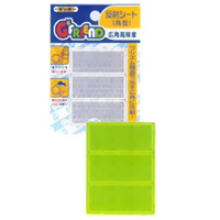 広角高輝度反射材を使用しているので、どの角度からでもライトを強烈に反射します。耐候性・耐久性に優れ、雨などが表面に付いても、反射性能は変わりません。自転車やランドセル、傘などの身の回りの持ち物に貼り付けて、交通事故防止に役立ちます。