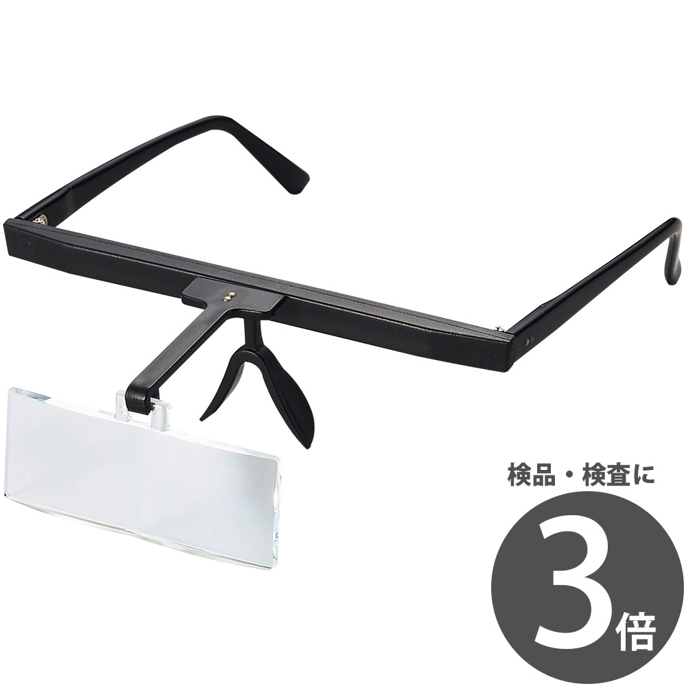 倍率がかなり高め(3倍)の検査向きのレンズです。(作業用としては適しません)メガネタイプ