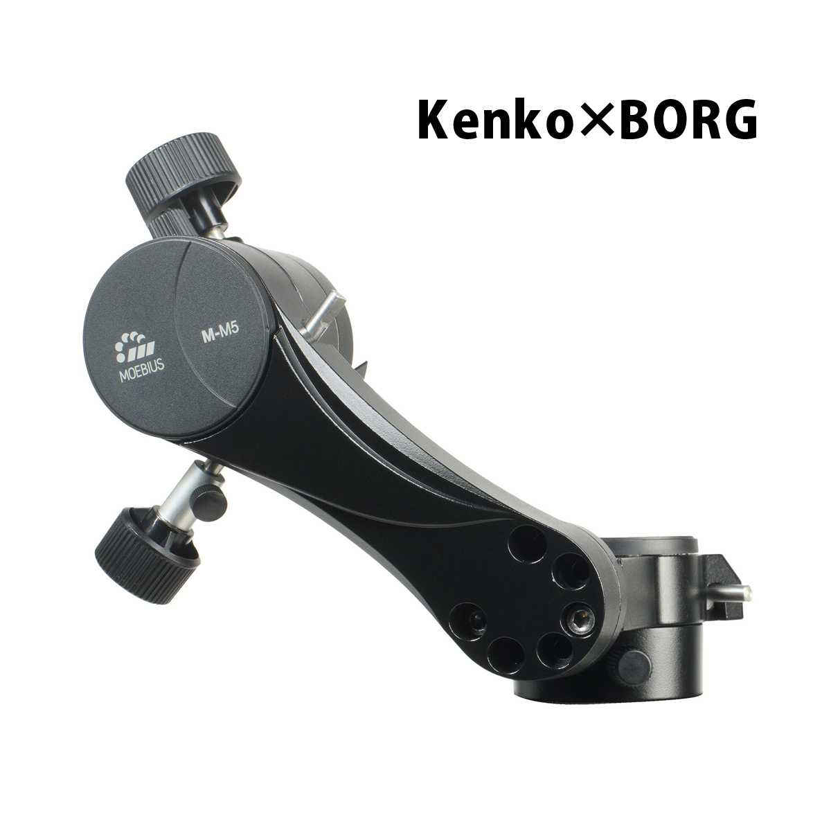 宙と繋がろう MOEBIUS(メビウス)シリーズMOEBIUS シリーズ第一弾として、MOEBIUS M-M5経緯台をご用意しました。初心者にも扱いやすい経緯台はフリーストップ式で、見たい位置で手を放せばそこで止まってくれるので、簡単に対象物に向けることができます。また微動ハンドルもついているのでスムーズな微動が行え、より細かな位置の設定が可能です。鏡筒の取り付けは互換性の高い45mm幅のアリミゾ式を採用していますので、ネジ1本で簡単に鏡筒の着脱が可能。45mm幅のアリ型採用の鏡筒であれば、他の鏡筒も簡単に着脱できます。