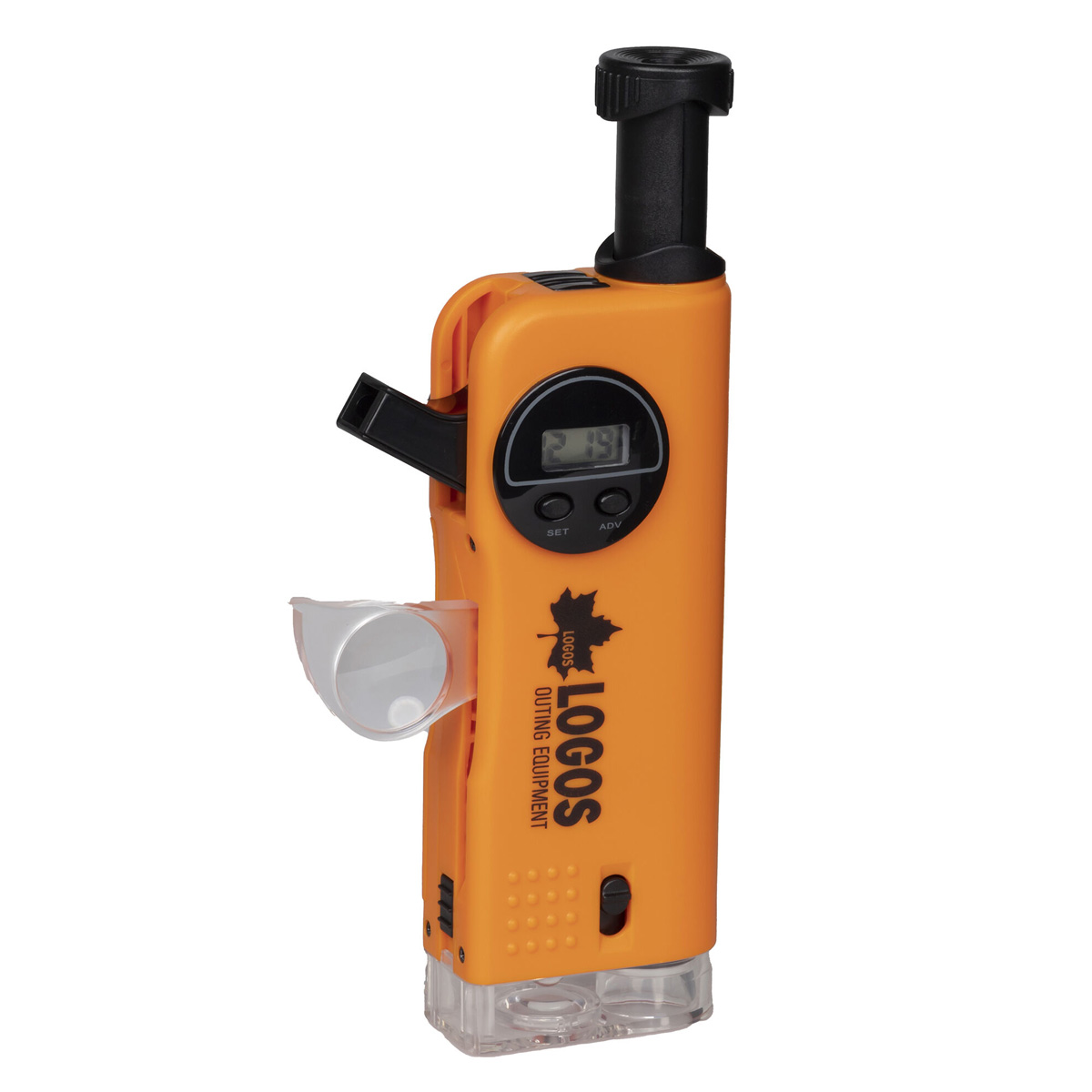 単眼鏡(倍率8倍)、顕微鏡(倍率30倍)、拡大鏡(9倍)、時計、コンパス、LEDライト、ホイッスルの7つの機能を持ったアウトドアギアです。これがあればキャンプが抜群に楽しくなります。本体色は目立つオレンジカラー。防災グッズとしても役立ちます。※この商品は(株)ロゴスコーポレーションからのライセンス許諾の元、企画生産したものです。