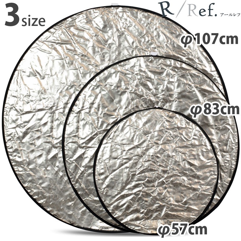 〈サンライト、シルバー、ホワイト、ゴールド、ディフューズ〉の5種類のレフ板を使い分けられる「全部入り」丸型レフ板。●セット内容:フレーム(枠)、4色カバー、ディフューザー、専用ケースケンコーのRレフシリーズは、撮影の際に被写体に光を反射させることで明暗差を調整したり、ライティングコントロールが行える反射板(レフ板)のシリーズです。ひねりながら折りたたむことで約1/3のサイズになり、携行に大変便利。専用ケースも付属します。オールインワンレフは5種類のレフ板を使い分けられる「全部入り」丸型レフ板。丸枠フレームに、ホワイト・シルバー・ゴールド・サンライトの4面構造カバーをかぶせることで、それぞれの色のレフ板として使用することができます。両面ホワイトのディフューザーも付属しており、4+1の5種類のレフ板として使い分けが可能。57cm、83cm、107cmの3サイズをラインナップ。