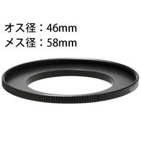 サイズの異なるフィルターやコンバージョンレンズを装着できるようにする変換リング。小口径のカメラに大きな取付ネジ径フィルターやコンバージョンレンズを使用できます。オス径:46mm、メス径:58mm