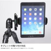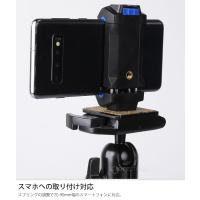 2段伸縮機構により、70〜180mm幅のスマホまたはタブレットを取り付け可能なホルダー底部と背部にU1/4インチ三脚ネジがあり、三脚上に取り付け可能ホルダー上部にはアクセサリーシューを装備。LEDライト等を取り付け可能