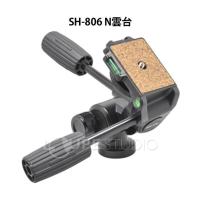 精密な構図決定が可能な「コマ締め式」を使用した高精度3WAY雲台高精度タイプの3ウェイ雲台。雲台の締め付け軸を「コマ」と呼ばれるパーツで固定する「コマ締め式」を採用。一般的な「割締め方式(雲台のダイカスト部品に割りを入れ、軸を固定するように動かす方式)」と異なり、雲台の固定時に雲台の外側が動かず、従って構図の決定時に雲台が動かないのでより精密な構図決定が可能です。「SH-806 N」は中型タイプ。フィットする三脚はパイプ径28ミリ前後の中型タイプで、三脚と雲台は小ネジ(U1/4インチ)で固定します。いずれの雲台も、カメラの固定はダブルナットのカメラネジ式。大型のつまみで操作性を追求しています。カメラネジは丸穴で、カメラネジの位置が動かないため、取り付けがスムーズです。水平だしの目安となる2軸水準器を装備。