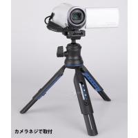 カメラ・スマホ・アクションカメラを取り付けできる小型三脚。テーブルポッドと手持ち三脚(グリップ)の2つの活用方法が可能です。全高:215mm