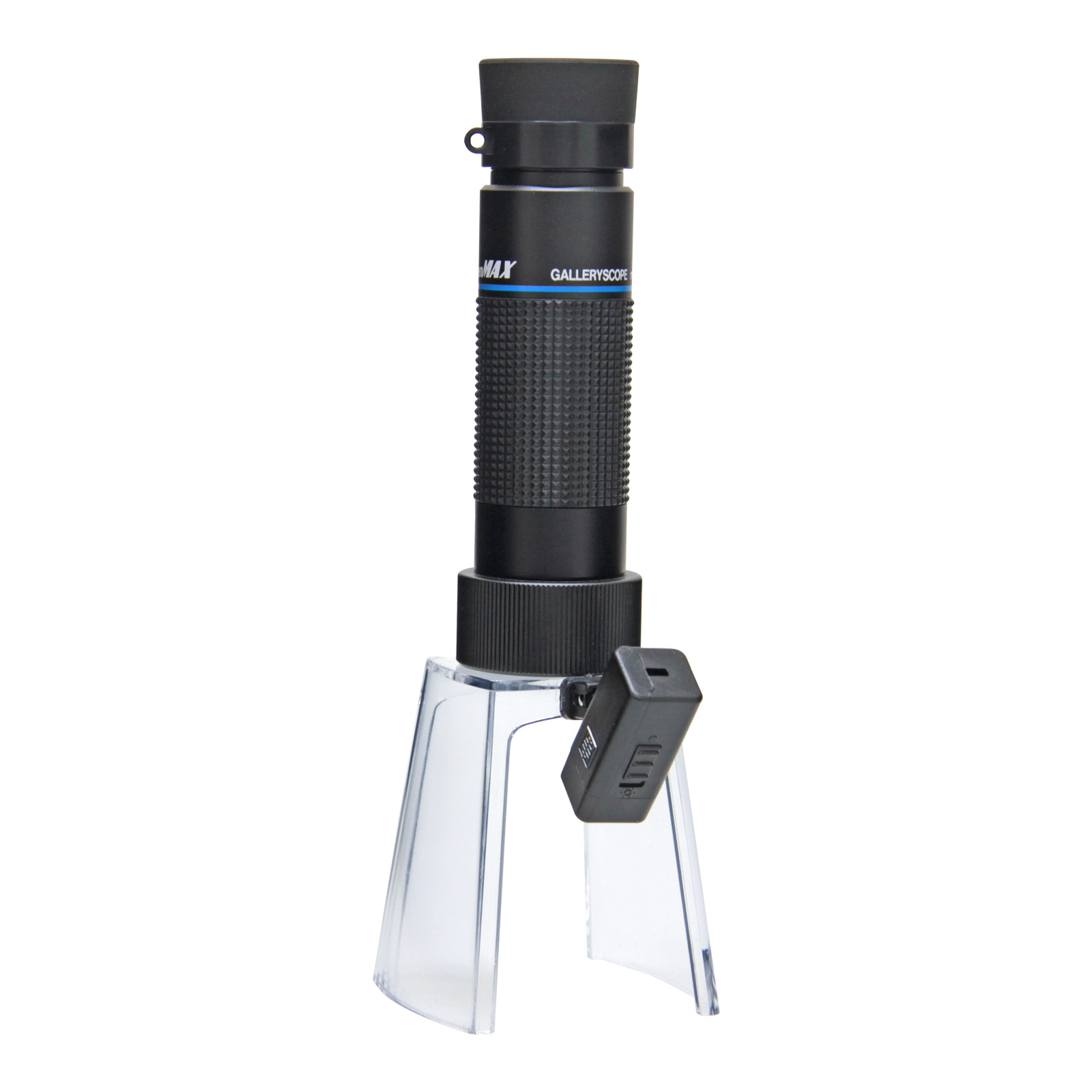 遠くを見るためのものはいくつかあります。双眼鏡は実用性はあるが、大きさ、重さが難点。オペラグラスはハンドバッグにも入る大きさで携帯には便利だが倍率が足りない、解像度が劣り物足りない、などそれぞれ一長一短があります。「軽量・小型」と「高性能」、この2つの課題をクリアして登場したのが単眼鏡のギャラリースコープKMシリーズです。遠くのものだけでなく近くのものもはっきり見られ、高輝度LEDライト付マイクロレンズスタンドを使えば顕微鏡としても利用できる1台3役の優れた単眼鏡です。レジャーや趣味、仕事などさまざまな場面でその威力を発揮します。