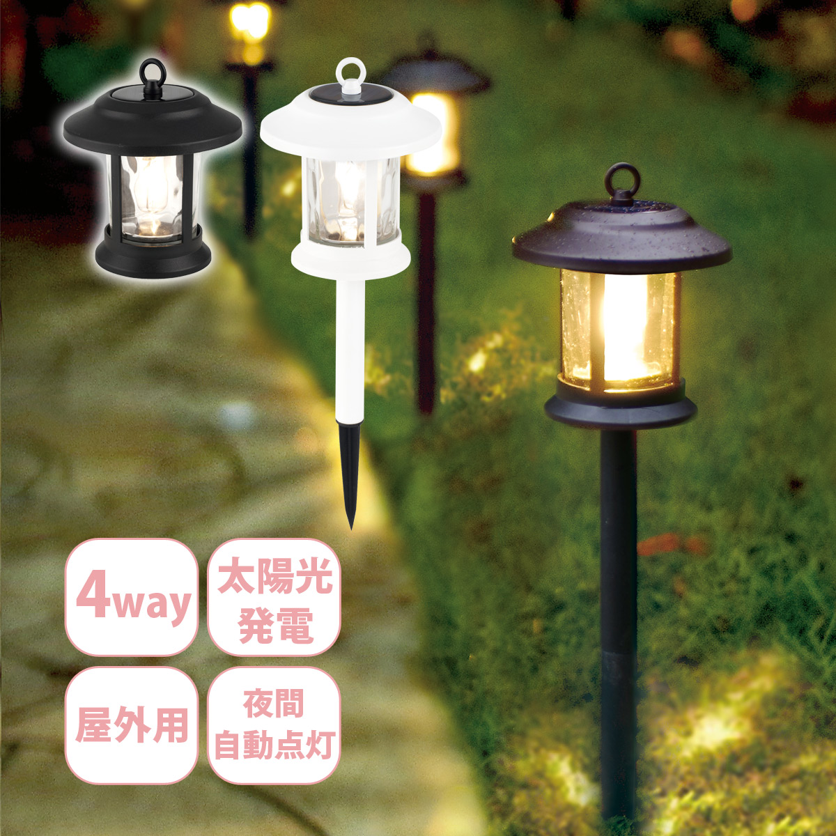 置く場所を選ばず馴染む定番デザインのソーラーガーデンライト。お庭に合わせて使い方選べる4WAY仕様!