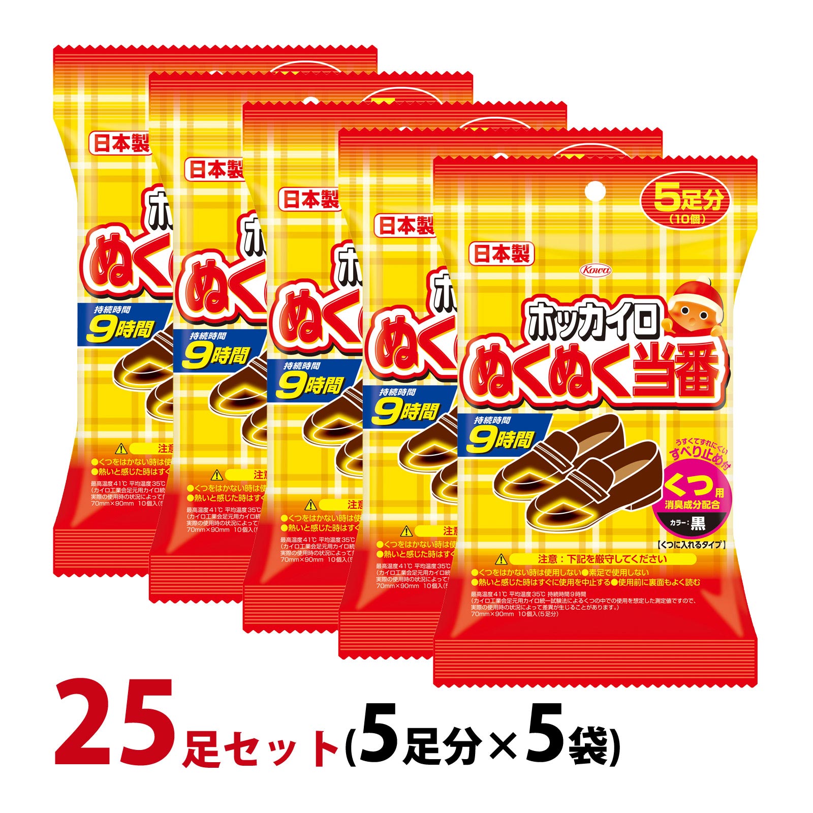カイロ 足用 ホッカイロ ぬくぬく当番 くつ用 25足セット(5足分×5袋) 貼らない 使い捨てカイロ 靴に入れる 使用期限:2026年4月