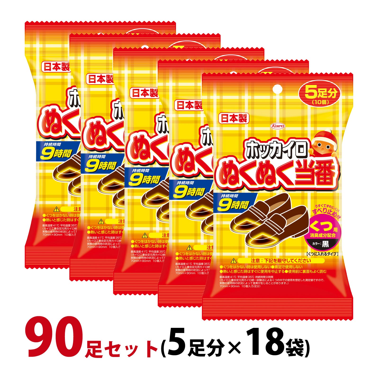 カイロ 足用 ホッカイロ ぬくぬく当番 くつ用 90足セット(5足分×18袋) 貼らない 使い捨て 靴に入れる 使用期限:2026年4月