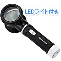 プラスチック枠にガラスレンズを使用したLEDライト付ルーペです。置くだけで焦点が合うタイプです。1mm・1インチメモリ付き、倍率が高いためルーペに近づいてご使用下さい。