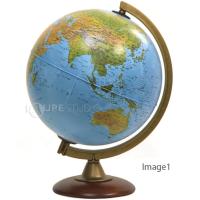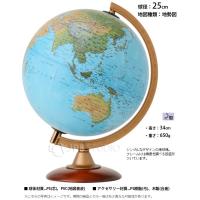 地勢図とは「地勢図」山や森、砂漠、海などを自然な色合いにした地図。自然環境が分かりやすくなっています。アクセサリーの特徴弓型のフレーム(材質:PS樹脂)で球体を支えています。フレームには緯度を調べる目盛がついています。