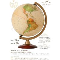 おしゃれなアンティーク調地球儀。球径:25cm/行政図/プラスチックフレーム&純木製台座