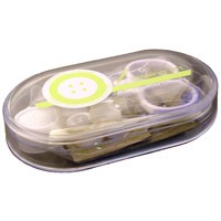 かわいいプリント柄のオーバルケースに入ったソーイングキットです。