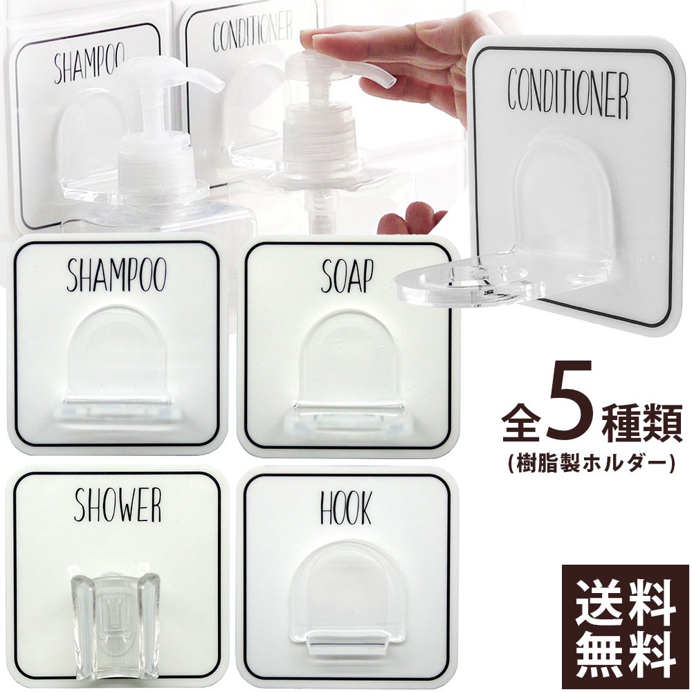 ボトルを壁付けできるシートフック。種類に合わせて使い分ければまるでホテルのシャワールーム!ボトルの底にぬめりが溜まらず衛生的に使えます。【この製品は樹脂製ホルダータイプです】