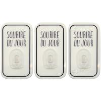 パリのアパルトマンをイメージしたシンプルデザインのシートフックシリーズです。パリのアパルトマンをイメージしたシンプルデザインのシートフックです。つるつるした平らな面ならどこにでも貼れるので、お風呂・洗面所・キッチンなどの水周り、デスク周りやドレッサーなどに、簡単に収納フックを増やせます。水に強いだけでなく、はがし跡が残りにくいので、何度も気軽に張り替えられます。スペースの少ないワンルームのお部屋にも物が多い家族暮らしでも便利なアイテムです。人気のミニフックに白だけのセットが加わりました。3ヶで1セットです。