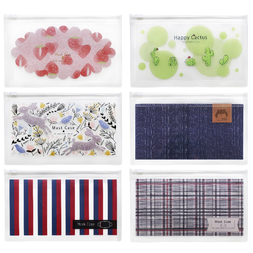 仕切りで便利に仕分け可能。気軽に持ち運びできる抗菌マスクケース。透け感のある素材に柄をプリントし、すっきりとしたデザインとなっております。内側に抗菌素材を使用しており、使用中のマスクを一時的に入れておくケースとして使えます。シールチャックになっていてゴミやホコリが入りにくく、薄型でかさばらずに持ち運べます。仕切り付きで、片方に使用中のマスク、もう片方に予備のマスクと清潔に収納できます。通常の使い捨てマスクでしたら、4枚まで入れて持ち運べます。マスク以外にも汗拭きシートや歯ブラシ、女性用品、通帳、パスポート、筆記用具などいろいろな使い方ができます。しばらくは外出時にマスクを使用されることが必須になると考えられるため、スマートにマスクを持ち運びましょう。