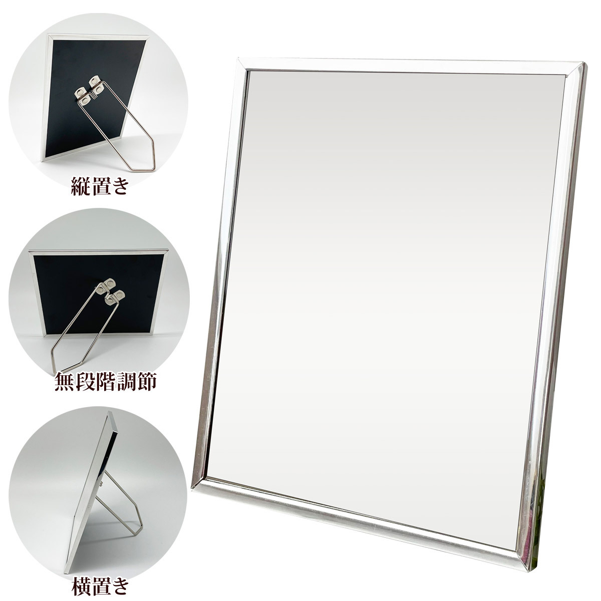 スタンドミラー,鏡,卓上メイク,化粧鏡,無段階日本製,角度調整,おしゃれ,インテリア,モダン,シルバー,軽量,薄型スタンドミラーL鏡卓上|メイク化粧鏡無段階角度日本製おしゃれシルバー