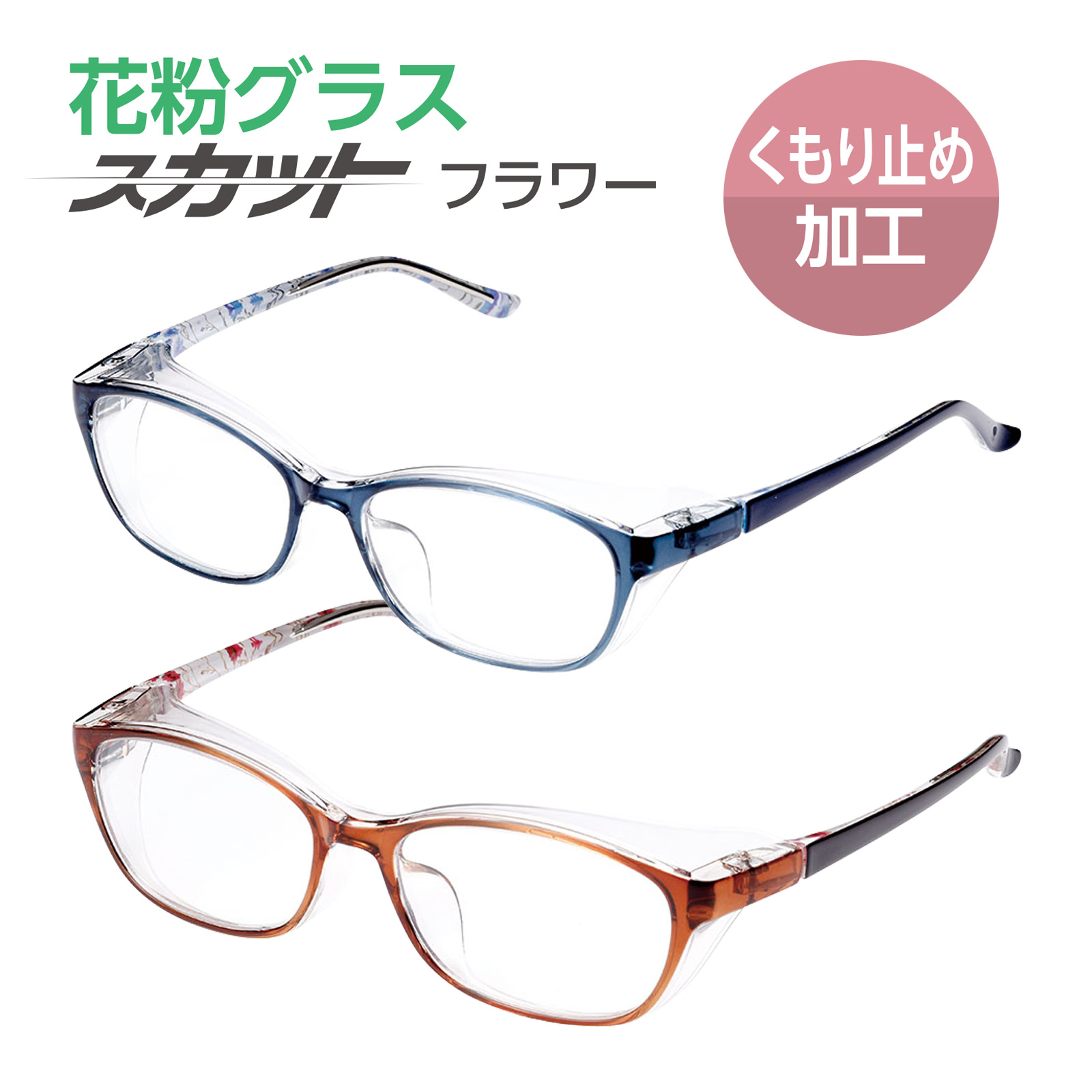 花粉グラス 花粉メガネ 保護眼鏡 UVカット レディース ネイビー ブラウン スカット フラワー SFL-002 くもり止め加工 花粉症 黄砂 PM2