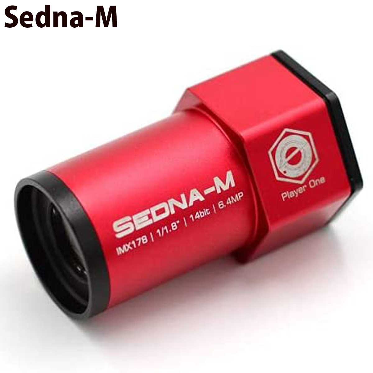 Sedna-M は Sony IMX178 1 /1.8 型センサーを採用したモノクロプラネタリーカメラです。約640万画素の高解像モデルで、より細かいピッチで精密なオートガイドを行うことが出来ます。また、月面や惑星の高解像度撮影にも適しています。NovaBoostingテクノロジーPlayer One AstronomyのXena-Mに採用されているNovaBoostingテクノロジーは、独自の技術でセンサーの周波数をオーバークロックし、センサーのFPSを向上させます。Xena-Mに搭載されているIMX249センサーの公称フレームレートは30FPSですが、Xena-MはNovaBoostingテクノロジーによって最大48FPSでの撮影が可能です。これにより太陽、月面、惑星のイメージングに十分なフレームレートが確保できます。DPSテクノロジーPlayer OneのガイディングカメラにはDPS(Dead Pixel Suppression)テクノロジーが搭載されています。DSPにより自動的にデッドピクセル(ホットピクセル、コールドピクセル)を低減します。256M DDR3キャッシュ搭載SDRAMメモリーDDR3を搭載。これによりフレームドロップを効果的に回避でき、安定したデータ転送を実現。また読み取り時のノイズを大幅に低減します。過電圧、過電流保護機能カメラや接続中の他の機器を過電圧および過電流による破損から保護する機能を装備しています。USB3.0高速データポートUSB3.0データポート(5Gbps)を搭載しており、従来のUSB2.0デバイス(480Mbps)の10倍以上の速度での転送が可能です。オートガイドのみならず、フレームレートが必要な月・惑星撮影にも十分な性能を発揮します。差し込みやすく、様々な望遠鏡に対応する形状Player Oneのシンボルである赤色と特徴的な六角形のデザインはそのままに、31.7mmスリーブに直接差し込める形状を採用しました。最大39mmの差し込みが可能で、バックフォーカスの制限を受けにくいため、様々なガイドスコープや望遠鏡にマッチします。