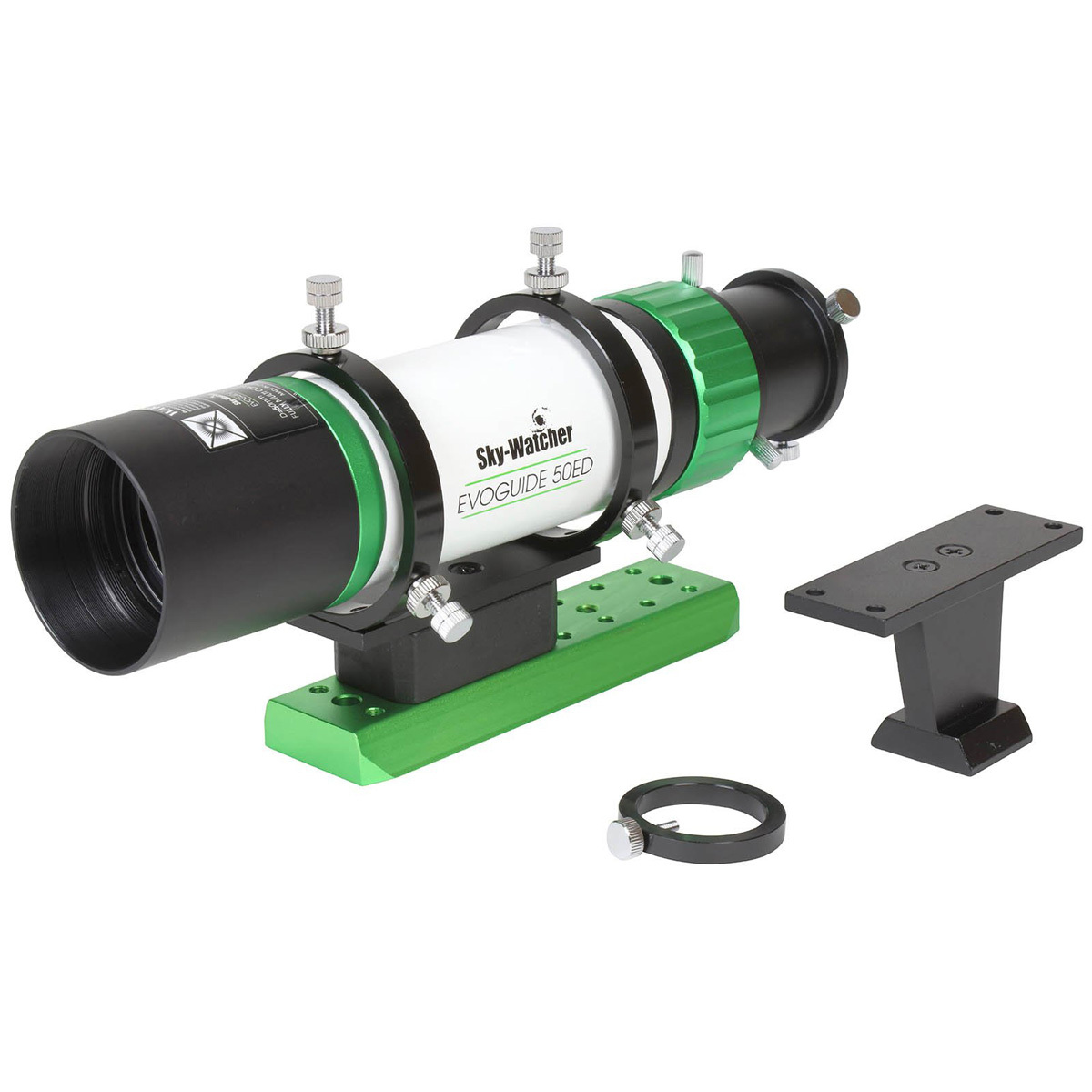 対物レンズにEDガラスを採用した高品質なガイドスコープです。ピント調整は対物レンズ側の回転と接眼側のヘリコイドを併用します。幅狭ドブテイルバー(底面43mm幅)とファインダーブラケット脚が付属。様々な取り付け方法に対応します。ファインダーブラケット脚はSky-Watcher製鏡筒のファインダー台座へ装着できます。別売のEVOGUIDE 50ED用フラットナーを併用することで、フラットフィールド約Ф28mmの撮影鏡筒になります。天体用CMOSカメラと組み合わせての電視観望にも最適です。