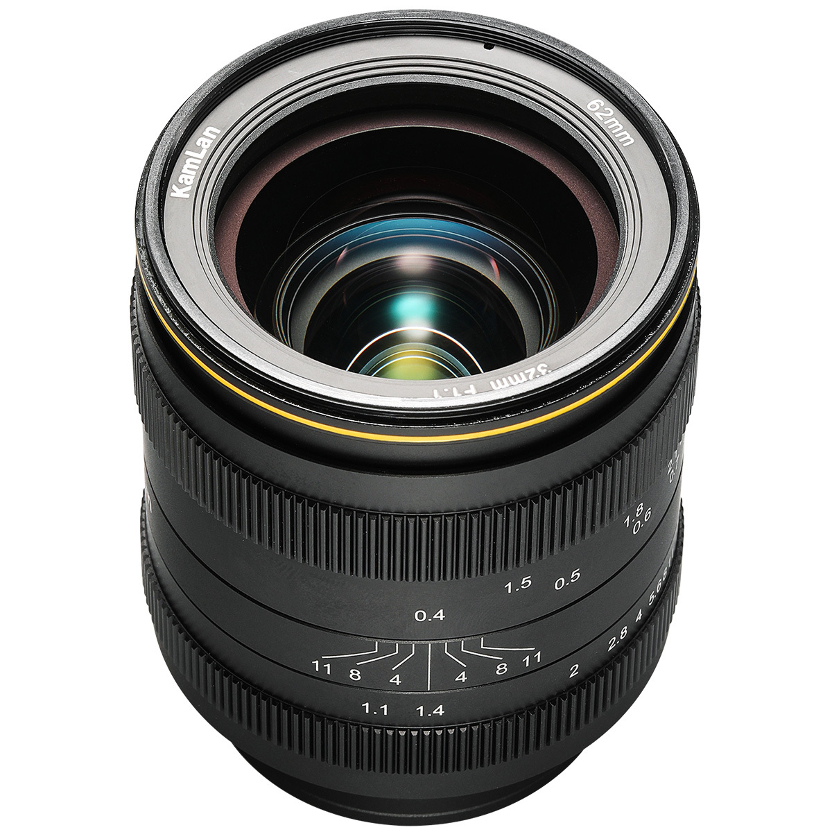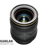 「KamLan KL 32mmF1.1」はAPS-Cカメラ用に設計されたハイスピードレンズです。フルサイズ換算で標準レンズに相当する32mmという焦点距離は、幅広い用途にご使用いただけます。F1.1という極めて明るい開放F値により幅広い映像表現にご活用いただけます。外形寸法:約92mm×70mm