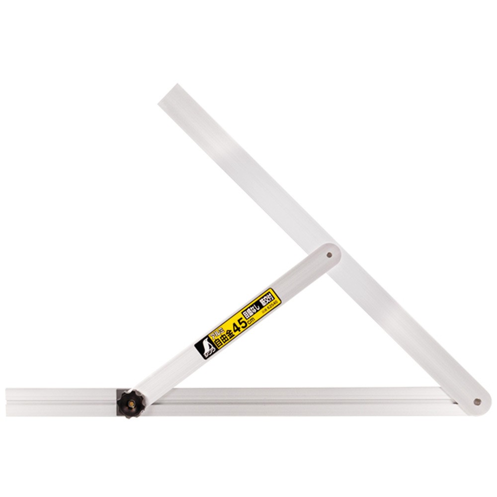 角度の写しケガキ作業丸ノコガイド定規として使用できる自由金。筋交付きでしっかり固定でき、作業中の角度変化を防ぎます。屋根勾配等の角度写し、ケガキ作業に使用できるアルミ自由金です。