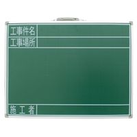 丈夫なスチール面、アルミ枠で強度を増している持ちやすい取手付折畳式スタンド付便利な付属品、黒板消し、チョーク3本付書きやすい暗線入マグネット使用可能