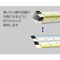 図面作成、寸法の読み取りに使用する三角スケール。折りたたみ式です。図面にピッタリフィットラミネート製法で目盛が消えない、読み易くかさばりにくい。