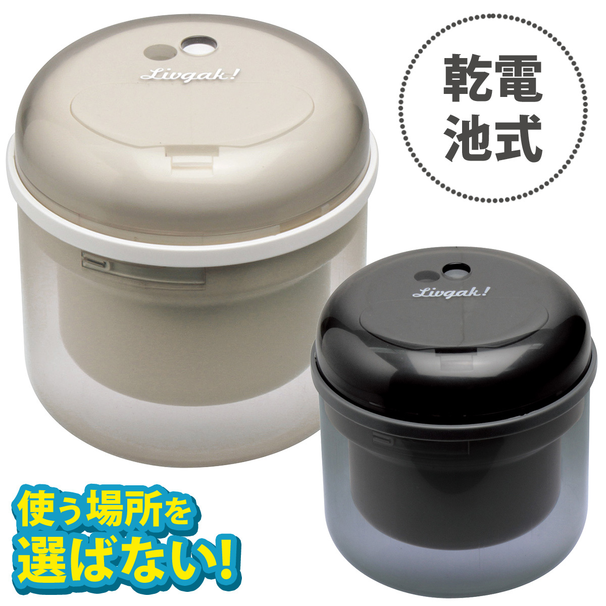 リビング学習にピッタリの乾電池式電動鉛筆削り!本格らせん刃とオートストップ機能で抜群の使用感を実現!商品サイズ:89×90×89mm