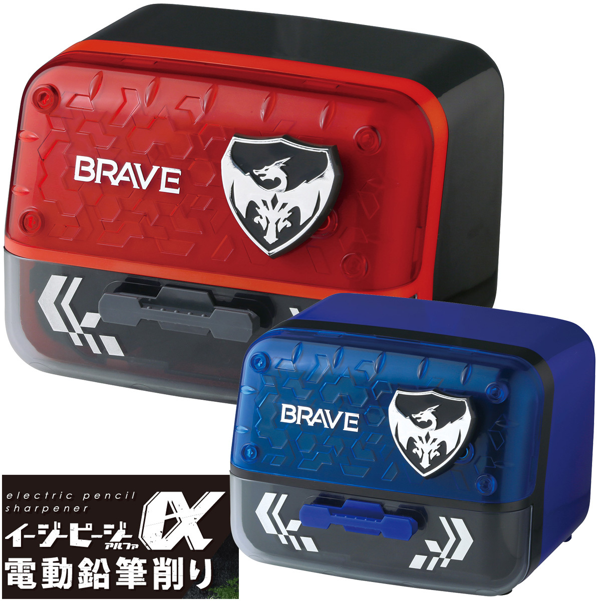 鉛筆の差込口には安全スライドカバー付きで、使わない時の誤挿入防止外せるコードと、持ちやすいコンパクト設計でゴミ捨てラクラク!15度の角度をつけた斜めの差込口で鉛筆が入れやすい!削り上がりオートストップ機能でムダ削りストップ!当社比約1.7倍の大容量ダストケース(約250cc)安心設計!オーバーヒート防止機能・電源遮断安全機構六角・丸・三角軸の3種類の鉛筆に対応(直径8mm以下、JIS規格対応)ドラゴンをあしらったクールなブレイブデザイン。ダストケースロック機能付きで安心!(ダストケースがロックされていないと安全装置が働きモーターが動きません。)