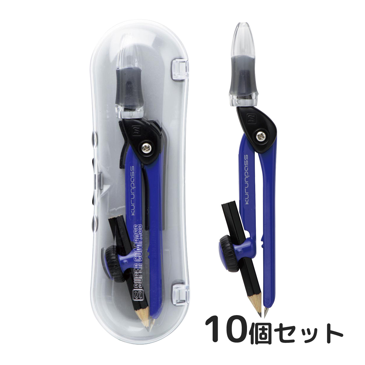 「くるんキャップ」搭載でこれまでの難しかったコンパスを一新!にぎって・くるんと・まわすだけ!革新的な円の描きやすさを実現くるんキャップは鉛筆の安全針キャップにもなります。回しやすい大型の鉛筆固定用ネジは外れない工夫がされています。簡易包装の学校納品向けパッケージです。曲面フォルムのスマートな専用ケース付きです。