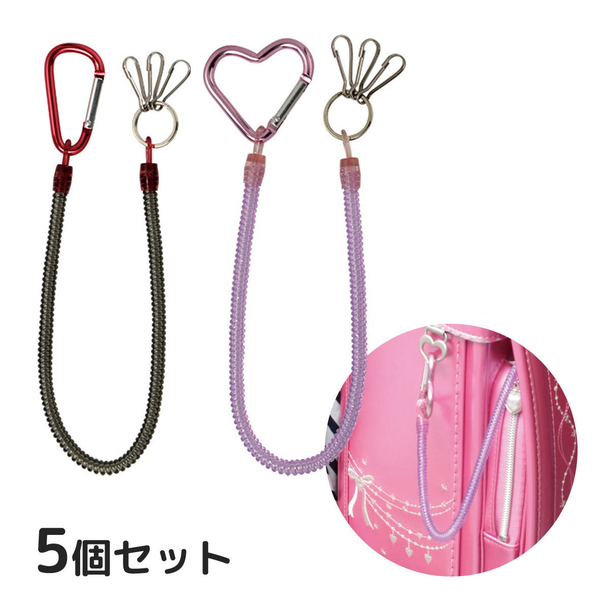 キーチェーン スパイラルキーチェーン ロング 30cm〜120cm 5個セット 鍵 カラビナ 子供 防犯 女の子 かわいい