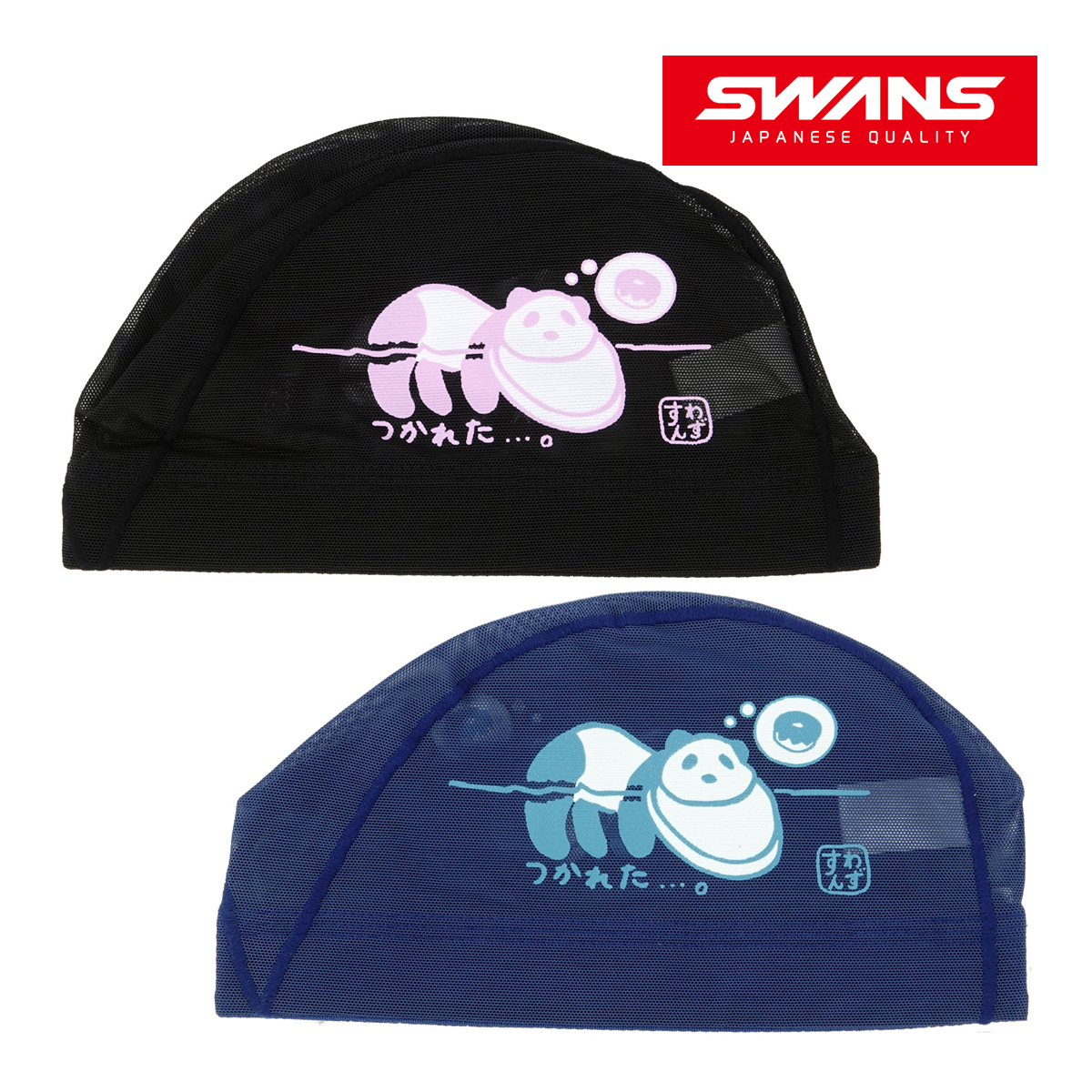 水泳帽子 スイムキャップ キャラクターメッシュキャップ 面白い Mサイズ パンダ かわいい スイミングキャップ スワンズ SWANS