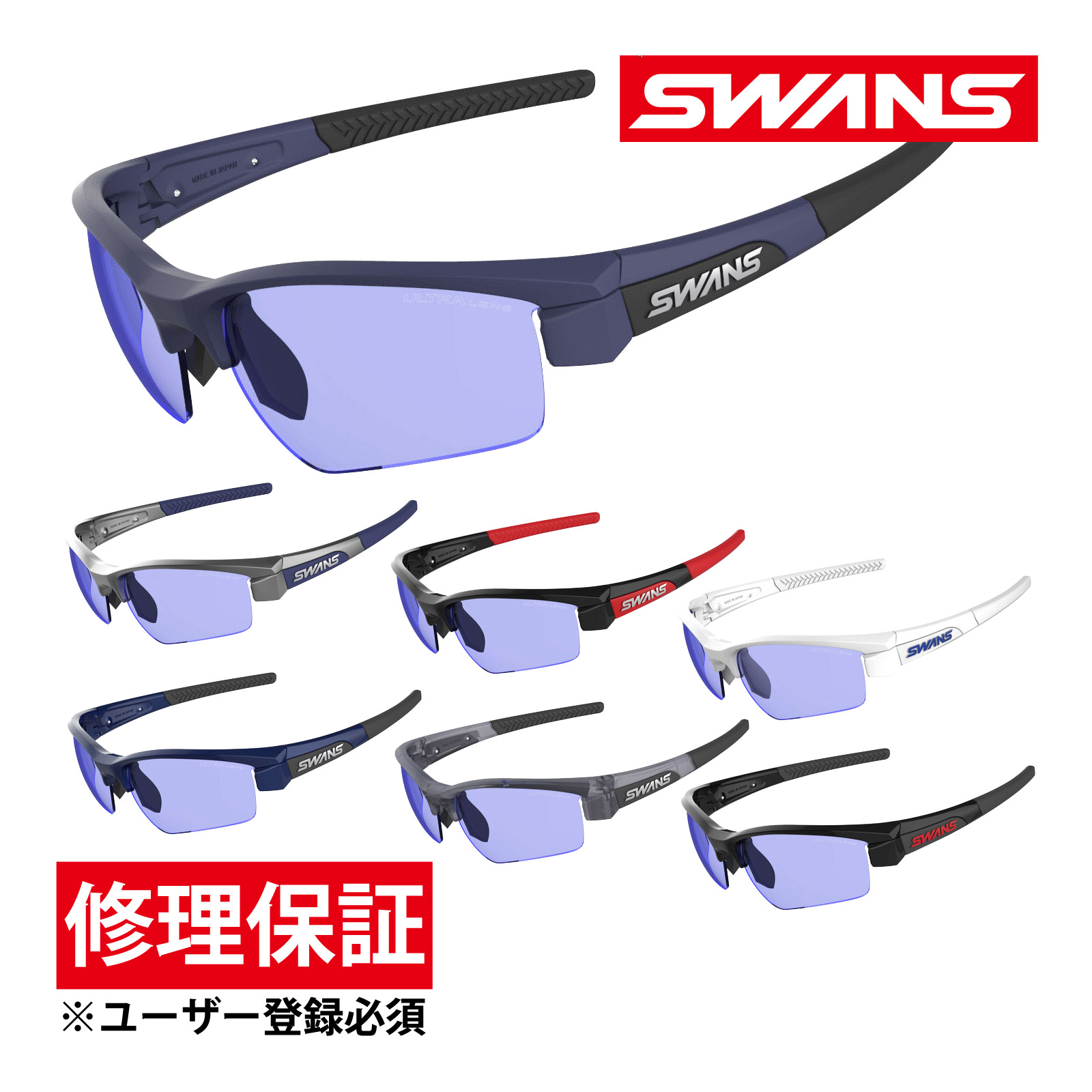 レンズセットアップシステムしなやかに掴むホールド感。進化を遂げたLION SIN。絶妙なフィット感と戦闘的なスタイルでアスリートに好評な「LION」シリーズ。テンプルエンドがフレキシブルに動くので、頭部の形状に合わせてが調節可能。頭を包み込むようなフレーム設計のためズレにくく、締めつけないフィッティングを実現します。鼻パットは汗をかいてもずれ落ちにくく、肌触りも柔らかな大型ラバーを採用。内部に金属の芯があるため幅広く、シビアな調節も可能です。従来タイプのレンズとも互換性があるため、スペアレンズ(別売)をお持ちの方は流用できます。お気に入りのフィット感のまま、様々なシーンに合わせたレンズチョイスが出来ます。アスリートの求める視界を確保し、そのパフォーマンスを最大限にサポートする。プロも認めるフルスペックのスポーツグラスです。【レンズ】偏光レンズレンズに特殊なフィルターが挟み込まれたレンズです。日光が水面や路面、植物の葉の表面などに反射したギラギラした反射光をカットします。余計な光をカットして景色をスッキリと見せる効果があります。【ULTRAアイスブルー】SWANS独自の視認性を高めたULTRAレンズです。「ULTRAアイスブルー」は白や黄色、赤といったカラーがはっきりと見えるカラー。ゴルフやテニスなどボールスポーツにも最適です。【両面マルチ】レンズ表裏両面にマルチ(反射防止)加工が施されているレンズです。光の映り込みを抑えてクリアな視界を確保します。【フレーム】レンズ交換機能、ノーズ調整、テンプル調整などで絶妙なフィット感が得られる、普段使いに好評な「LION SIN」シリーズ。