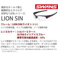レンズセットアップシステムしなやかに掴むホールド感。進化を遂げたLION SIN。絶妙なフィット感と戦闘的なスタイルでアスリートに好評な「LION」シリーズ。テンプルエンドがフレキシブルに動くので、頭部の形状に合わせてが調節可能。頭を包み込むようなフレーム設計のためズレにくく、締めつけないフィッティングを実現します。鼻パットは汗をかいてもずれ落ちにくく、肌触りも柔らかな大型ラバーを採用。内部に金属の芯があるため幅広く、シビアな調節も可能です。従来タイプのレンズとも互換性があるため、スペアレンズ(別売)をお持ちの方は流用できます。お気に入りのフィット感のまま、様々なシーンに合わせたレンズチョイスが出来ます。アスリートの求める視界を確保し、そのパフォーマンスを最大限にサポートする。プロも認めるフルスペックのスポーツグラスです。【ULTRAライトアイスブルー】SWANS独自の視認性を高めたULTRAレンズです。「ULTRAライトアイスブルー」は白や黄色、赤といったカラーがはっきりと見えるカラー。またアイスブルーよりも明るく調整され、曇天時からも暗さを感じにくいカラーです。ゴルフやテニスなどボールスポーツにも最適です。【シルバーミラー】レンズ表面に施されたミラー加工により、眩しさをより効果的に抑えます。他者から見た時に眼が見えにくいことも特徴です。【フレーム】レンズ交換機能、ノーズ調整、テンプル調整などで絶妙なフィット感が得られる、普段使いに好評な「LION SIN」シリーズ。