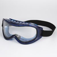 広視界スーパーワイド形濃紺半透明軟質塩ビフレーム防爆形クッション及び液体侵入防止用溝付25mm巾広黒布バンド(長さ調節式)Wアイピース交換可メガネ併用可マスク併用可UVカットベンチレーションなし鼻部クッション付Wアイピース(二重構造)=外気と内気の干渉層により結露しにくいくもり止め効果持続結露防止耐衝撃性UP危険飛来物貫通防止二次災害防止※スペアーアイピースも二重アイピースとなっています
