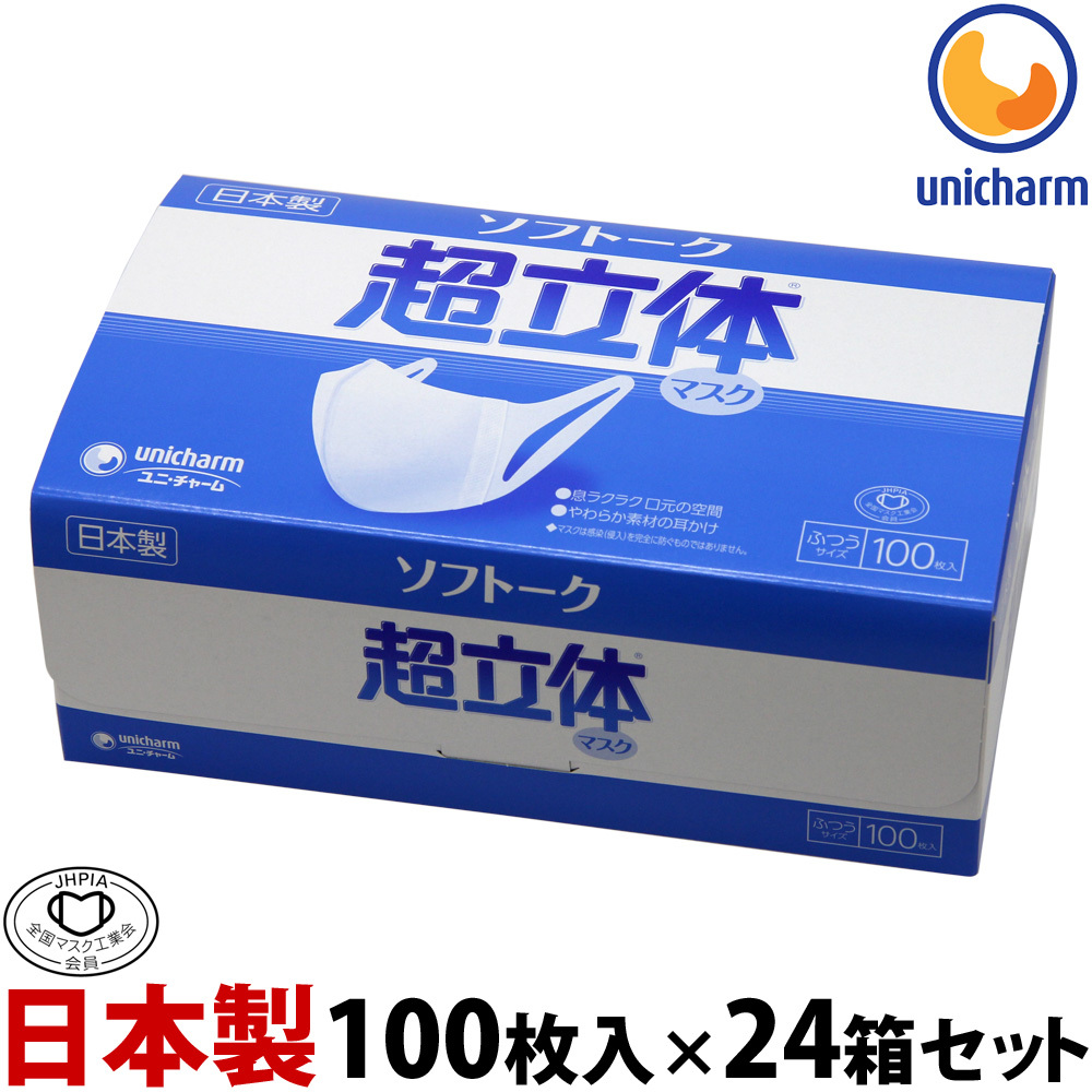 マスク 日本製 ユニチャーム 全国マスク工業会 使い捨てマスク ユニ・チャーム ソフトーク超立体マスク ふつうサイズ100枚入×24箱セット 耳が痛く