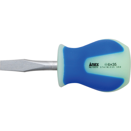 手作業工具 ドライバー・六角棒レンチ スタビードライバー ●暗い所で光を放つ特殊蓄光樹脂を使用しています。暗い所でもすぐにドライバーが見つけられます。(直射日光10分照射で24時間発光効果あり)●マルテンサイト系特殊ステンレス(高強度ステンレス(550))です。●錆に強いステンレスドライバーです。●刃先:[[−]]6●軸長(mm):35●全長(mm):80●先端マグネット:磁力あり●先端:マグネット入り●軸:ステンレス鋼●グリップ:ポリプロピレン、エラストマー樹脂